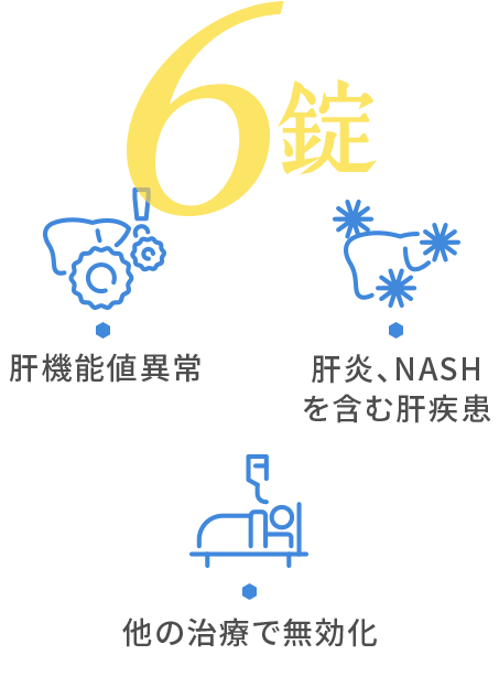 肝機能の不調による症状を一方的に制圧せず、肝細胞の復元と再生を促進することで、病因に関係なく肝臓の機能を正常に近づけ、肝臓病の予防に不可欠な肝臓の生命力そのものを高めます。